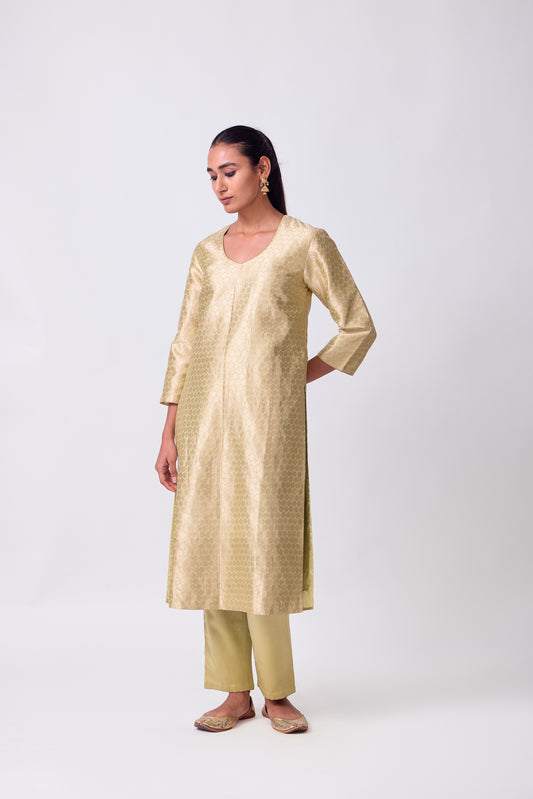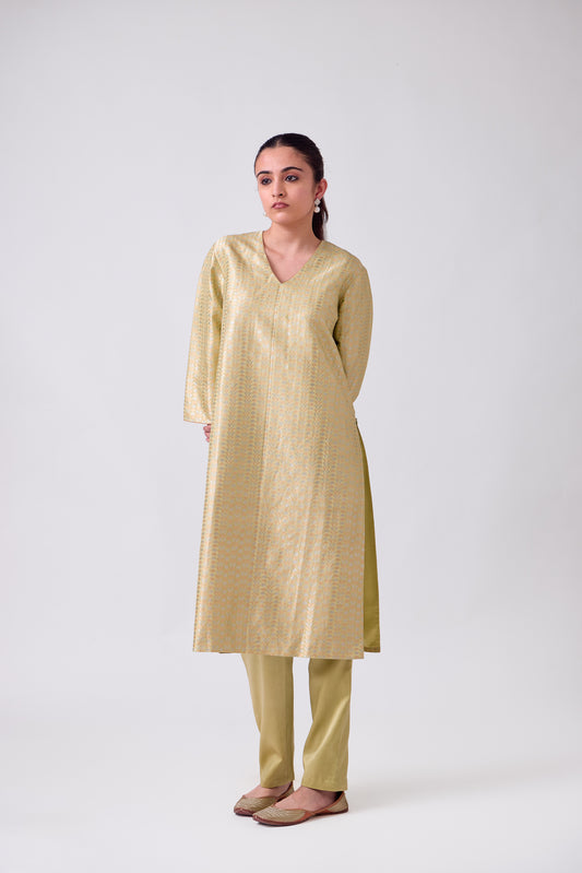 Kurta - Lime Yellow Silk Brocade