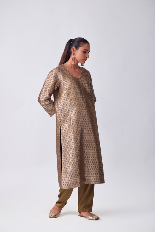 Kurta - Brown Silk Brocade