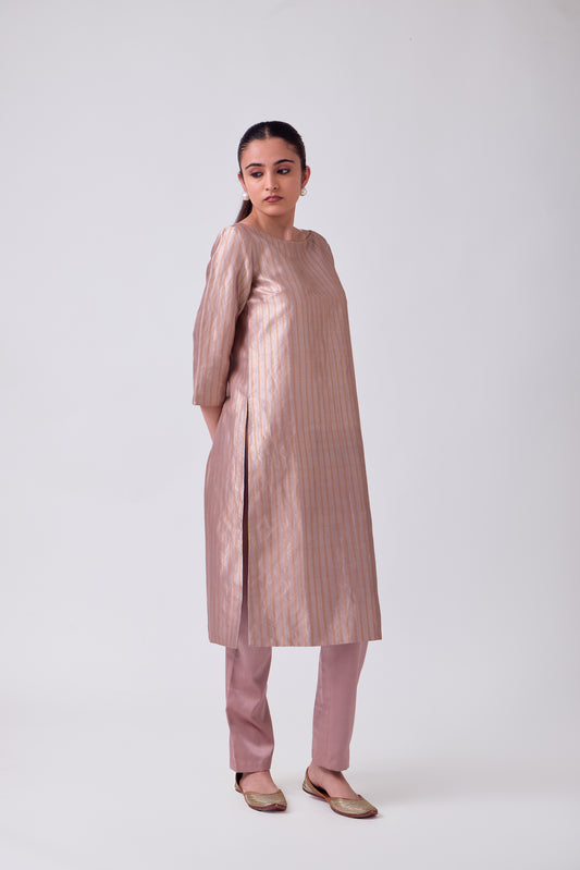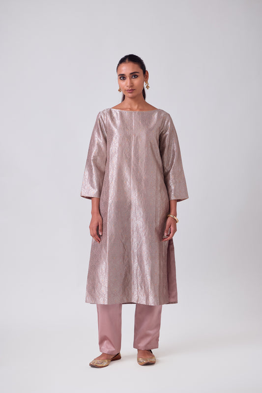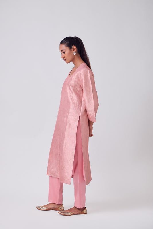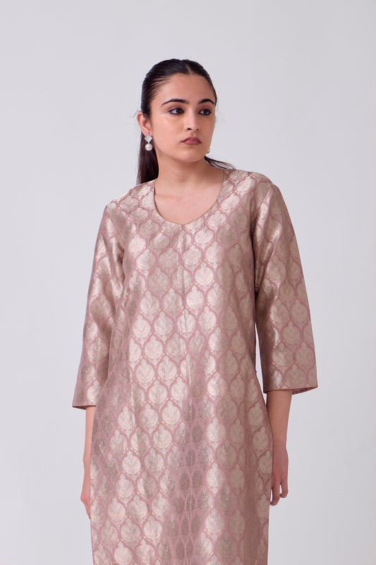 Kurta - Pink Silk Brocade