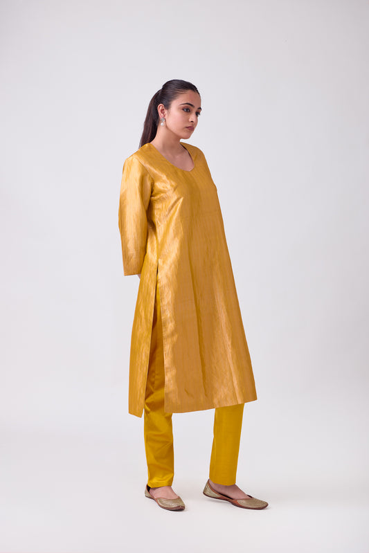Kurta - Mustard Silk Brocade