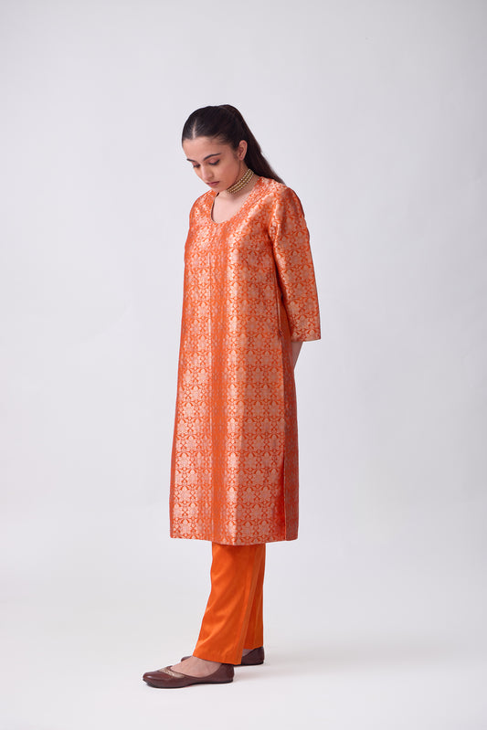 Kurta - Orange Silk Brocade