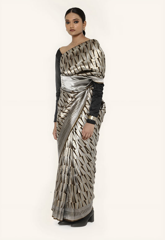 Dhari - BLACK SILVER JARI METALIC SAREE
