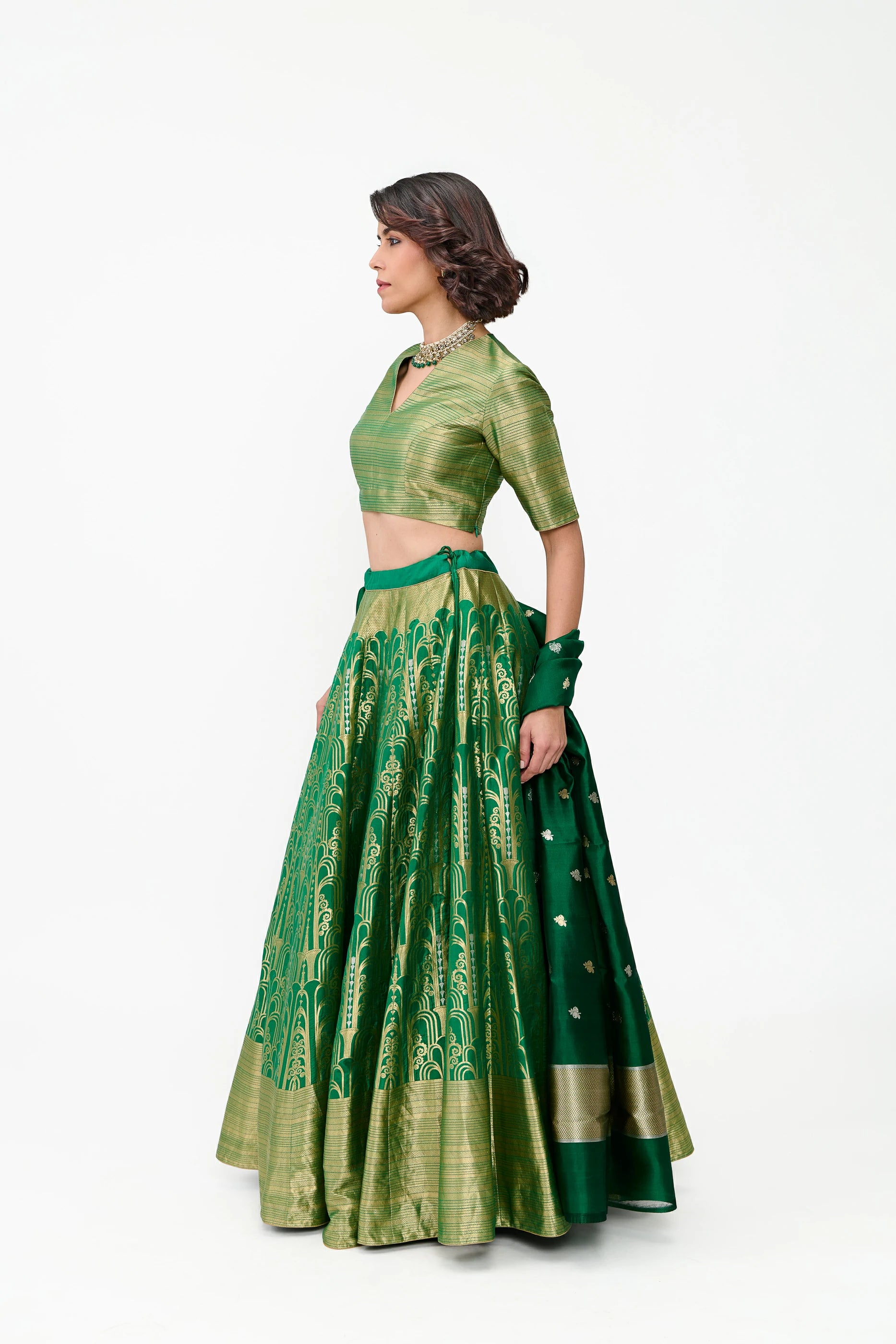 Aatishi Gold and Silver Zari Lehenga and Blouse woven in Phekwa Technique