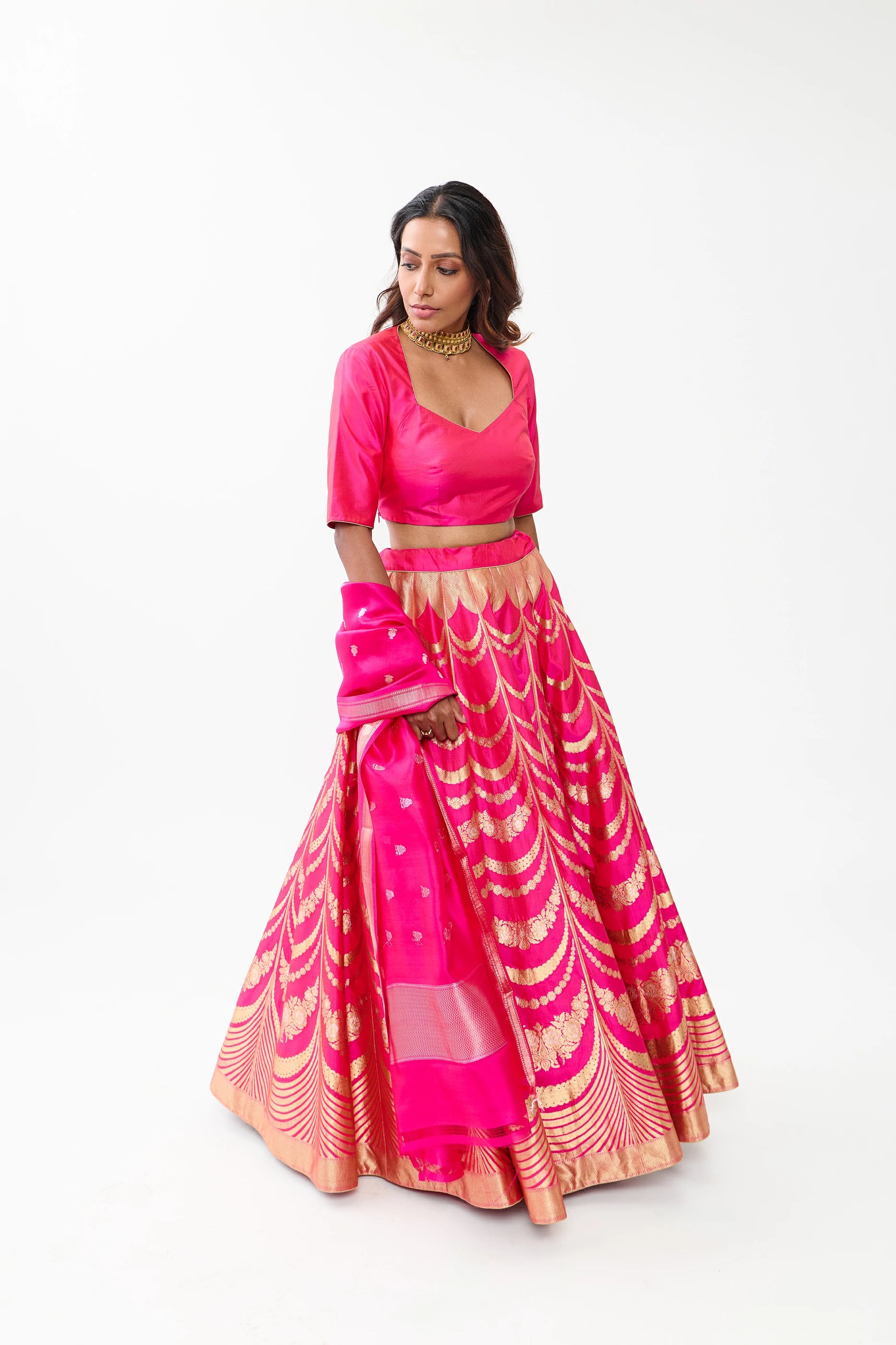 Haar Gold and Silver Zari Lehenga and Blouse woven in Phekwa Technique.
